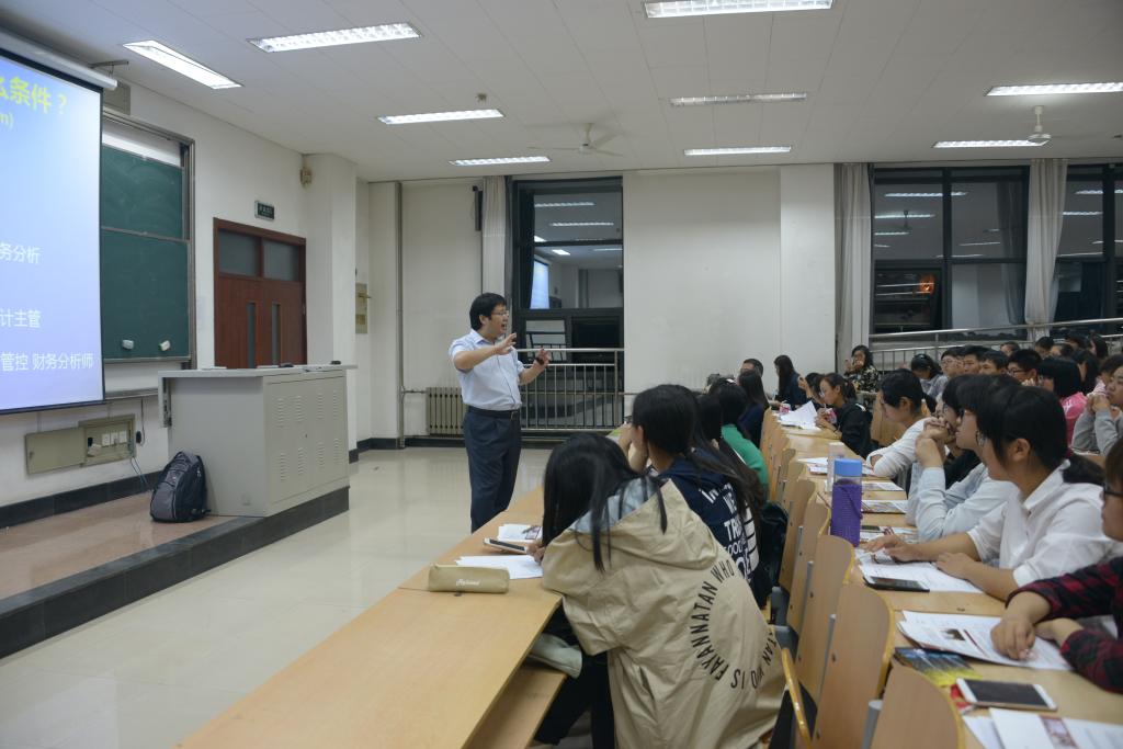 随后,王老师结合自己的切身体会就“AICPA课程班”的课程讲了两点。第一点,该班既学习美国会计准则、又学习国际会计准则,再加上同学们在专业课程中也学习的中国会计准则,三种会计准则的对比将使同学们能够站在准则制定者的高度来比较深刻地理解会计准则,而不仅仅作为会计准则的被动接受者去死记硬背。第二点,美国CPA课程是对同学们本科会计专业课程的扩展和深化,同时由于使用原版英文教学材料,还能极大地提高同学们的英语水平。第三点,相对于中国CPA考试,美国CPA考试并不难。她告诫同学们大学期间要尽可能多地汲取知识养分,争取毕业时拥有较高的起点。