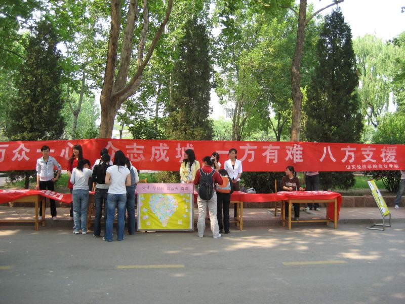 联合山东电视台发动同学为灾区人民募捐