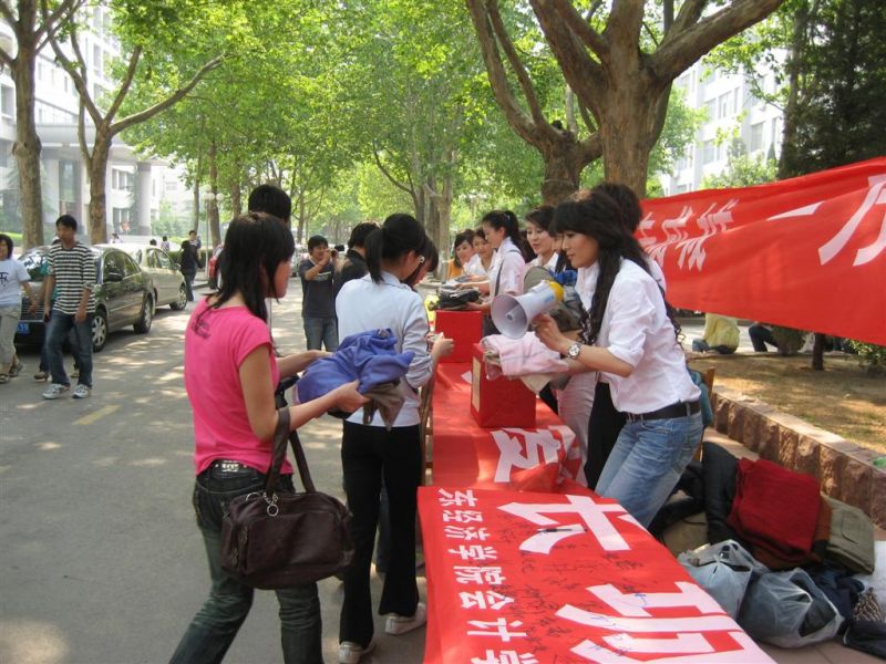 学生会联合山东电视台新闻女生组栏目组成员组织参与了此次的募捐活动。