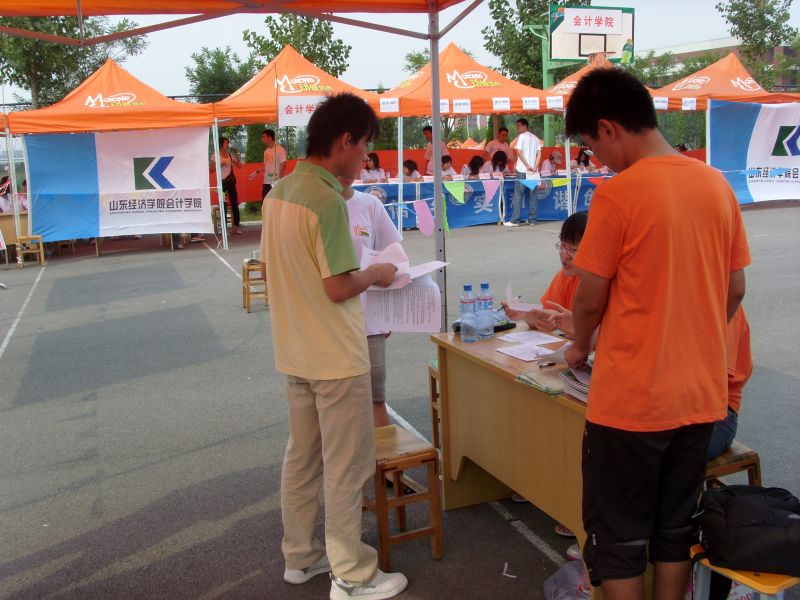 报名工作于中午十二点正式开始,为上好大学第一课,整个报名工作由新生独立完成。报名入口处设有党员服务站,为新生解答档案转移、预备党员转正工作中存在的各种问题。同时,质点通讯社的工作人员在出口处向新生发放宣传材料及入学指南,热情的帮助新生尽快了解山经。另外,引导员、解说员在场地入口周围及宣传板处耐心引导同学报名,详细介绍MG电子 情况,为新生解答有关入住宿舍,以及日常生活等方面的疑惑,帮助新生更快更好地适应大学生活。一位迎新工作人员告诉我们:能够为学弟学妹们服务,即使再热再累也很值得。