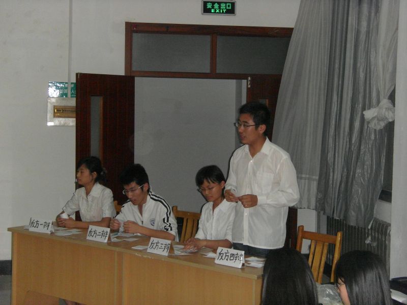 最终,反方队员凭借默契的配合、犀利而又不失诙谐的语言、严密的论证与论据取得胜利,成为这次辩论联赛的冠军。历时多日的辩论联赛在同学们的掌声中落下帷幕。