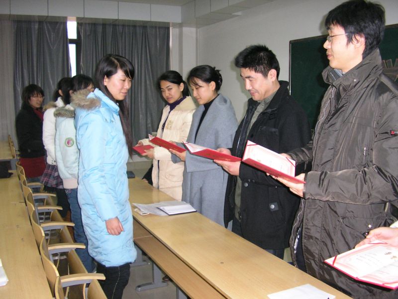 杨书记在会上对MG电子 举行的“纪念会计与改革开放三十周年文艺晚会”作了总结,她指出,我们的晚会精彩且达到了较高的水平,得到了校领导的充分肯定,这首先是大家群策群力的结果,与同学们的辛勤付出分不开。会上,对在晚会上表现突出的演员和工作人员进行了表彰,为所有参加晚会的演员颁发了“优秀演员奖”,张雅琼、何皓等同学获得“表演积极分子”奖,段敏、陈丹等参与组织策划的同学则获得“优秀组织奖”。此外,对于05级同学占用自己的学习时间为晚会做出的牺牲,杨书记提出了表扬并表达了感谢。