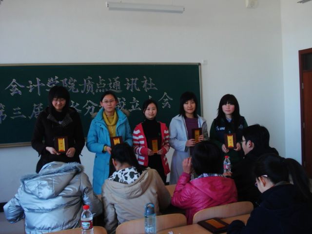 大会由质点通讯社明水分社负责人毛润丽主持。毛润丽首先宣读了质点通讯社2008级成员名单,王佃冰老师和质点通讯社新任领导给2008级新成员颁发了聘书,祝贺他们成为质点通讯社成员,同时勉励他们在以后的工作中更加努力。质点通讯社社长卢玥作了精彩发言,她分别从感情、工作、学习三个方面谈了对大家的要求和希望,强调了质点通讯社一家人的概念,告诫大家一定要做好自己的本职工作,努力学习。最后,毛润丽做了总结发言,她对本学期明水分社的工作作了明确要求,特别是要对MG电子 的系列活动,如深入学习实践科学发展观、模拟招聘会、校运动会等,要做到跟踪报道。同时希望大家尽早把质点纸制杂志办好。