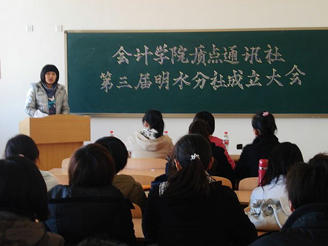 质点通讯社第三届明水分社成立大会在明水校区1113教室召开。质点通讯社明水校区负责老师王佃冰、质点通讯社社长卢玥、秘书长李佳、副社长董璐璐、副社长史慧和副社长孔毅华应邀出席。质点通讯社明水分社全体成员参加了此次大会。