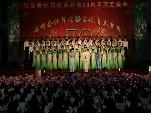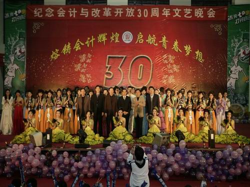 承办的“熔铸会计辉煌 启航青春梦想”——纪念会计与改革开放三十周年文艺晚会在山东经济学院明水校区体育馆举行。山东省财政厅张洪军副厅长,会计处冯桂华处长,刘焕平副处长、侯萍副处长、朱平副处长,山东经济学院党委书记张体勤教授,党委副书记刘清乐教授、牟思伦教授,副院长聂炳华教授、张东超教授以及院长助理胡元木教授等观看了演出。