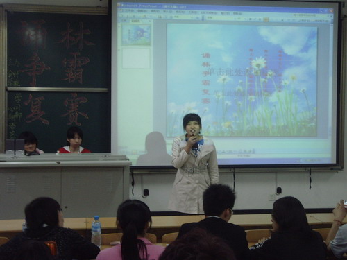 4月13日晚,诵林争霸赛复赛第一场在明水校区3202教室拉开帷幕。