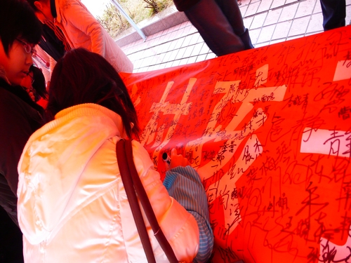 虽然天气湿冷,小雨不断,但是丝毫没有影响同学们参加活动的热情。同学们抱着悉心整理一摞摞的杂志书籍前来捐赠,捐赠的书籍多为科普、教育方面的,但也不乏《读者》、《青年文摘》等优秀杂志。还有的同学在长长的条幅上签下自己的姓名,留下自己的祝福。与此同时,济南电台Music88.7和章丘电视台也派出记者前来采访报道本次活动,大大扩大了本次“小桔灯爱心捐书活动”的影响力。当媒体记者采访MG电子 王佃冰老师时,王老师说道:“爱心捐书活动仅仅依靠我们一个学校的力量是远远不够的,我们希望通过媒体的宣传推广,号召在济高校,号召全社会关注贫困地区的儿童,将爱心传递下去……”最终,活动在一片充满祝福和希望的氛围中结束。