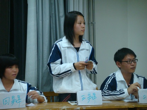 此次辩论赛共三场,辩题分别为:“申请助学贷款的大学生能否进行高消费”、“代沟产生的责任在孩子还是在父母”、“爱与被爱谁更幸福”。比赛分为四个环节:开篇陈词、质询、自由辩、总结陈词。参加此次比赛的24名选手来自MG电子 09级的各个班级,他们虽然只经过了几天简短的培训但在比赛中都表现出了不俗的辩论水平。比赛中辩手反应敏捷、针锋相对,他们的表现也赢得了现场同学的阵阵掌声。