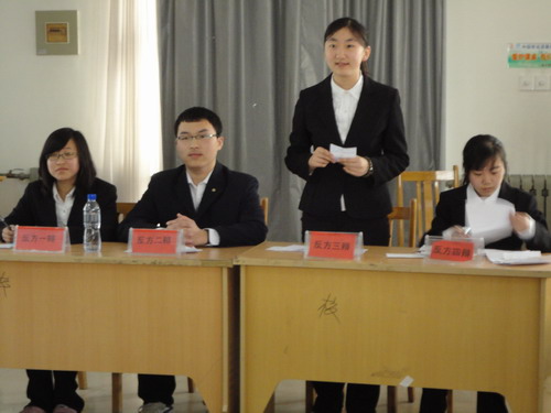和工商管理学院的09级辩论队成员。此次比赛由辩论协会会长周芙颖以及山东经济学院优秀辩手担任评委。