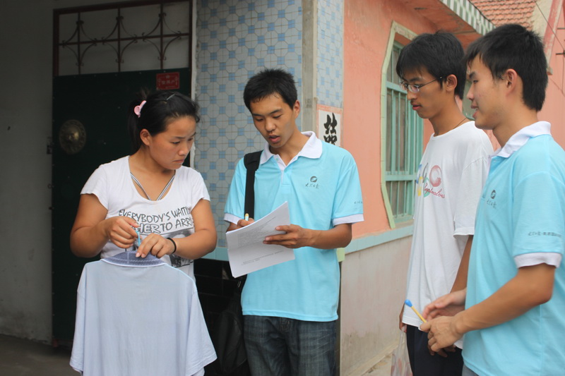 随后我们又给范阿姨发放了调查问卷,在结束调查准备离开的时候,外面下起了大雨,大家一同躲在范阿姨家里避雨。寿光电视台的记者王志慧也向我们调研队的队长赵志刚提出了一些问题。