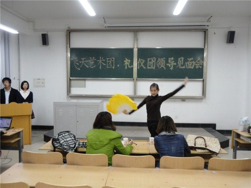文艺部、女生部联合举办的“飞天艺术团、礼仪团见面会”在明水校区电教2103教室举行,并邀请了08级文艺部负责人常琪和女生部负责人孙雪嫣担任评委对10级新生进行指导,现场座无虚席。