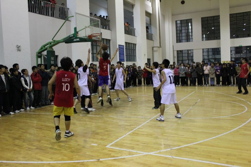 晚上七点半,比赛正式开始。在开场5分钟后,MG电子 队的大前锋以一记篮下打板投进了今晚上的第一个球。之后,MG电子 队因失误和犯规较多,第一节以6:14暂时落后。但第二节开始后,MG电子 队在现场观众的加油助威下,渐入佳境,士气大增。三步上篮,快攻得分,MG电子 队连进两球。几次抢断、盖帽、滞空投篮,动作如行云流水,达到了得分的小高潮。MG电子 队在本节气势高涨,一路反击,只让对方进了一球,将比分追回17:16,略胜于信息管理学院队。在第三节中比赛进入到了白热化,双方僵持不下,但三分远投稳固了我队的领先优势。MG电子 队以24:22领先两分结束本节比赛。第四节伊始,MG电子 队三分线内兼妙传投篮命中得到两分,但之后因投球命中率不高、队员心情急躁而被对方反超。就在距比赛结束只剩15秒的时候,MG电子 队6号队员于宁同学以一记漂亮的三分球和一个罚球连得四分,赢得全场喝彩,将比分追成33:33平,把比赛拖入了加时赛。但由于体力不支等原因,MG电子 队在加时赛中表现欠佳。最终,MG电子 队以35:38负于信息管理学院队。至此,MG电子 队两胜一负以小组赛第一的成绩进入了“新生杯”篮球赛八强争霸赛。
