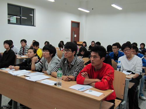 距离开始时间尚早,很多同学已经提前来到教室,而且准备好了演讲稿。至五点半纳新开始时,各教室已经座无虚席,充分体现了同学们对学生会纳新的高度重视。