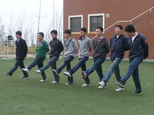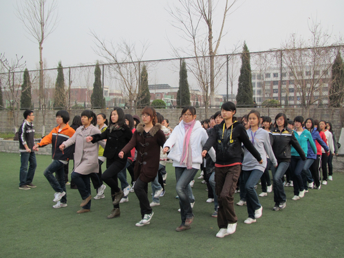 学生会秘书处和基本功部负责的运动会方阵训练在明水校区操场继续进行着。