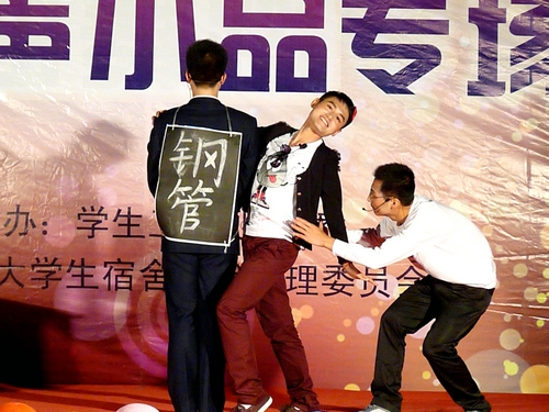 5月19日晚七点,由校学生工作处、团委主办,大学生宿舍自我管理委员会承办的第九届“大学生宿舍文化节”之原创相声小品专场演出在明水校区体育馆广场正式开始。我校党委副书记牟思伦教授、副院长张东超教授、学生工作处处长苏洪志教授作为嘉宾出席现场,同时MG电子