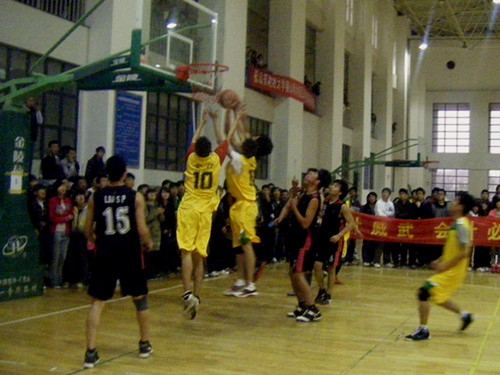 下午三点,比赛正式开始。球队双方都采用快打猛攻的战术,致使比赛一开始就立刻进入紧张僵持状态。其中,国际教育学院篮球队因罚球获得本场比赛首分。随后,MG电子 篮球队队员精彩补篮,抢进猛攻,使比分以4:1赢得领先。然而,国际教育学院篮球队在其提出暂停,进行对策调整后,强势攻守,迫使MG电子 频频失误。最后,国际教育学院篮球队以10:21的比分反超MG电子 ,结束了上半场比赛。下半场比赛伊始,MG电子 篮球队在严密防守的基础上加强进攻,积极配合。只见MG电子 队员采用断球快攻,杀到篮线,迫使对方犯规。紧接着,其三分球的冲击使得比分逐渐拉近,赢得场下阵阵喝彩。继而,MG电子 篮球队队员们团结协作,一鼓作气强势进攻,逼迫国际教育学院篮球队频打防守,双方一度进入僵持状态。 最终,MG电子 篮球队以31:37惜败国际教育学院,与本年度“流动杯”篮球赛冠军擦肩而过。赛后,MG电子 篮球队队员主动与对方球员握手拥抱,展现了“友谊第一,比赛第二”的体育精神。