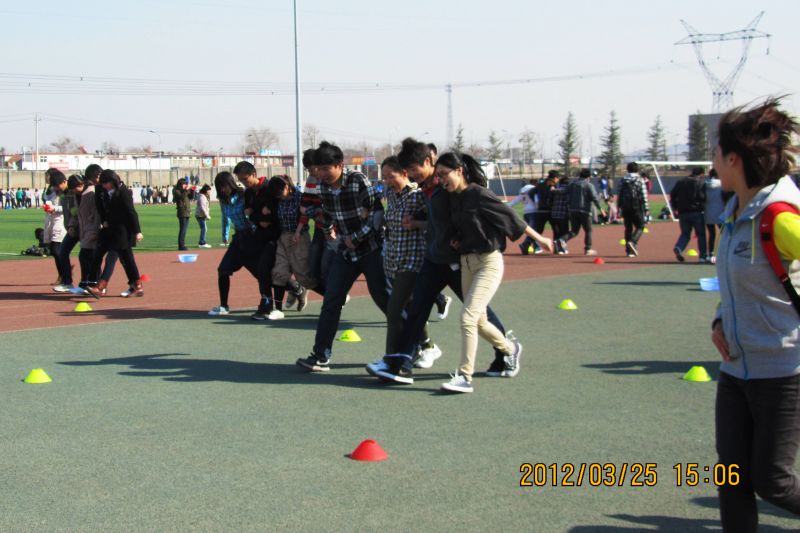 在进行正式寻宝之前,同学们必须经过四个环节的考验:“四人五足”中,每组四名队员两两把脚绑在一起站成一排向终点前进,考验了组员们的协调和默契程度;“四人气球阵”则要求四个同学背靠背夹住气球将其传送到终点;“空中快递”环节,同学们用嘴衔着吸管传送小环,由于难度较大,队员们个个都很小心谨慎;最后一关“心有灵犀”每组出两位选手蒙住眼睛“两人三足”走到终点,同时将装满水的水杯从起点运到终点并准确地倒入桶中。偶尔出现差错,队员们都能不慌不乱,及时纠正。各组争分夺秒地攻克四个难关后,又飞奔到篮球场上,三次投篮成功后才能获得寻宝的线索——和藏宝所在地相关的照片。顺着照片上的线索,凭借对校园的熟悉,各组队员协商后分头行动,仔细搜索,不久教学楼旁的草丛里就传来了欢呼声!经过紧张的比拼,最终会计三班和财管二班的寻宝小组在最短的时间里找到“宝物”并列第一。