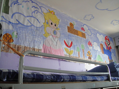 记者跟随着评审团的脚步走进MG电子 的寝室区,走廊曲折向前,带领着我们邂逅了无尽的温馨与浪漫。我们时而步入蔷薇小院,感受那淡淡的雅致与恬静;时而闯入郁郁葱葱的爬山虎丛中,欣赏那翠绿的活力与生机;时而在金黄灿烂的向日葵田里,品味那热烈的温暖与舒适;时而在梦幻浪漫的薰衣草之海,拥抱那浪漫与清新……其中,有的同学将熟悉的网络元素带入雅舍设计中。不仅使用社交网站的界面装饰了宿舍门扉,也利用新鲜事的罗列渲染出浓厚的生活气息,新奇的创意为观者带来了无限惊喜。除此之外,卡通爱好者们更是将寝室装扮成卡通人物的小窝,童年的纯真氤氲了一室回忆;而热爱游戏的同学则把宿舍摇身变为“超级玛丽”的冒险岛或是“欢乐斗地主”的牌坊,形象的描绘更是充满了观赏性与趣味性。