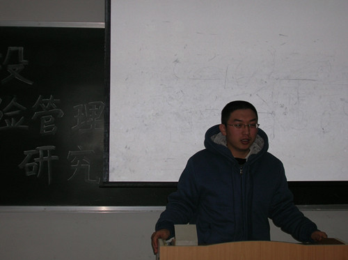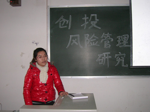 首先,宫琳同学结合自身经历说明了此次活动的学术和实践意义,即深入了解创业投资公司风险管理的相关知识。接着,由三位同学分别从不同角度对创业投资公司风险管理进行了讲解。柳秀平同学以创业投资的概念为切入点,对中国创业投资公司风险管理进行了深入的分析;胡慧琳同学重点阐述了创业投资公司投资经理的道德风险问题及防范;贾秀芬同学指出创业投资公司的特点及其面临的风险和对策,并结合实例进行了具体的分析。最后,在潘潇同学主持的现场提问环节,三位同学耐心细致的回答了同学们提出的问题。宫琳同学对上述交流讨论进行了总结,活动在一片掌声中圆满结束。
