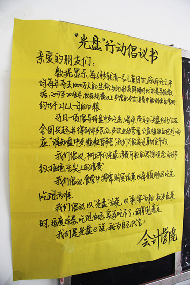 圣井校区学生会组织“光盘行动,节约为赢”宣传活动,号召全体师生积极参加到“光盘行动”中来。