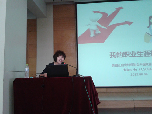 此次讲座的主题为“高端财务人才发展方向及行业未来发展趋势”。胡玉华老师以职业生涯规划为出发点,先后从四个方面向我们介绍了本次讲座的相关内容。首先,胡玉华从自己的亲身经历讲到“职场教给了我什么”,告诉我们应从现在开始设定自己的职业生涯目标,并去享受实现目标的过程;其次,她对现场同学们的职业理想进行调查,一起畅谈了职业理想;第三,胡玉华着重讲解了如何使自己在众多的应聘者和同事中脱颖而出,并从学习、实习、简历、面试、工作能力等不同的角度向大家阐述了应如何准备才能从与他人的竞争中取得先机;第四,胡玉华简单地介绍了美国注册会计师(U.S CPA)的相关情况,她最后总结到“拥有美国会计师资格的国际会计人才在国内的职场发展前景是非常好的,希望广大的MG电子 会计学子们认识到这一点,并努力提高自身的竞争力”。