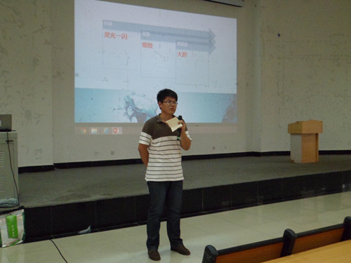 晚上6点半,启动仪式正式开始。主持人介绍了“调研山东”的活动方式、参赛流程及时间安排,并对往届调研山东活动进行了回顾,使在场观众对“调研山东”有了一个较为全面的认识。随后,创新与实践中心2009级成员关雨阳、郭立轩分别介绍了调研的方式方法以及他们的经验技巧。最后,创新与实践中心2011级成员孙彬晖针对选题方向、相关奖励等具体信息加以解释。