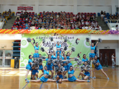 第二届校园文化艺术节啦啦操大赛在舜耕体育馆隆重举行,来自各学院的14支啦啦队参加了此次比赛。