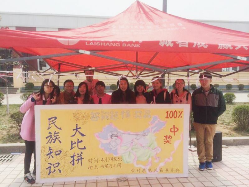 学生会民族事务部于明水两餐厅之间举办“民族知识大比拼-有奖竞猜活动”。