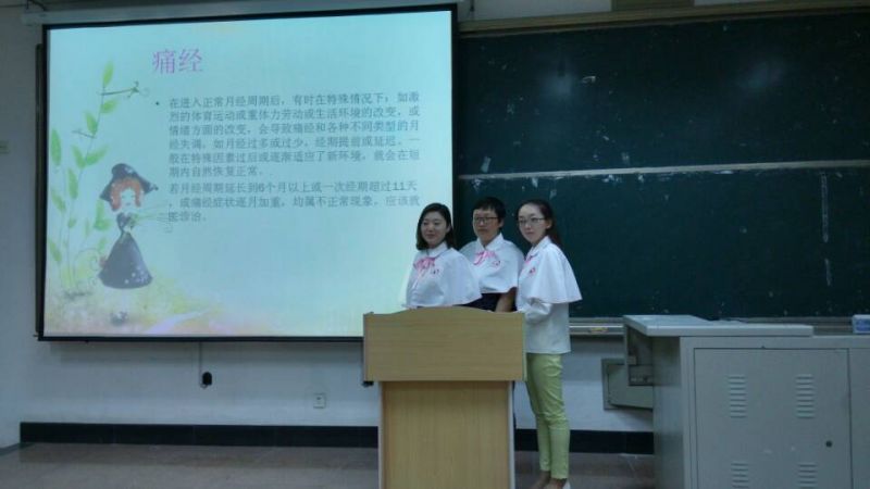 女生部主办的“女大学生健康教育讲座”在明水3217教室举行。本次讲座面向明水校区全部女生,有幸邀请到济南市中心医院妇科主管护师张洪志,主要对女大学生的生理健康进行专业的指导,众多女同学参加了讲座。