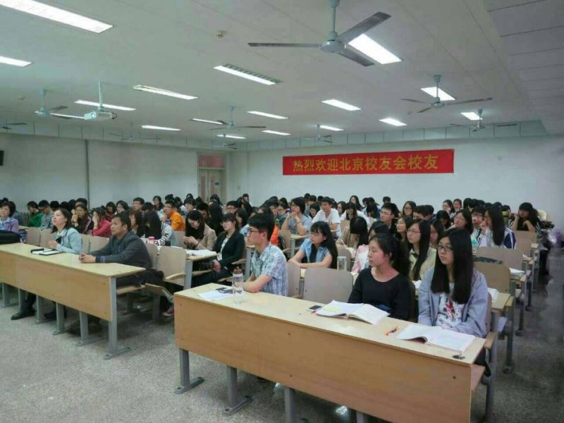 下午两点四十,119教室里早已座无虚席,同学们都在激动地讨论着今天的主讲嘉宾,学生会的学生干部们也在积极地布置教室,在教室后方挂着醒目的“热烈欢迎北京校友会校友”横幅,以表示对北京校友会校友的热烈欢迎。三点左右,讲座正式开始。学院党委副书记付亚致辞,简要介绍了北京校友会以及北京校友会与MG电子