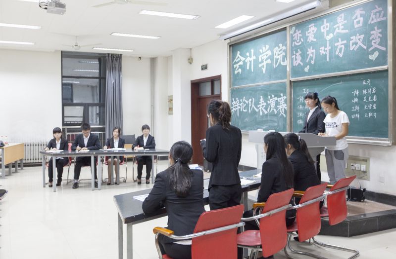 、工商管理学院及学校各社团相关负责人出席了此次表演赛,新颖的辩题吸引众多学生观看,现场座无虚席。