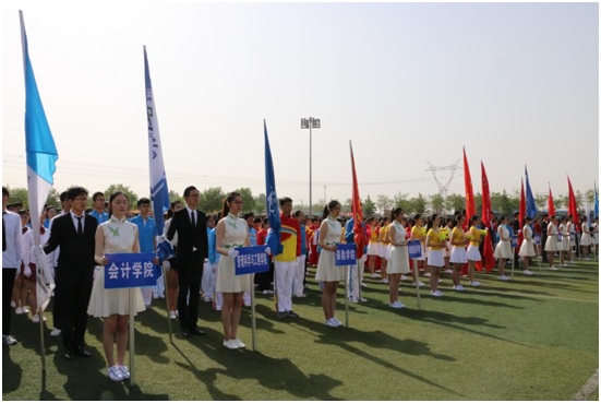 尤其引人注目,整齐划一的服装增添了女生的英姿飒爽、自信脱俗,男生的矫健有力、豪情满天。他们高喊着“扬帆掌舵,奋勇拼搏,看我会院,气势磅礴”的雄浑口号,昂首阔步走过主席台,英姿飒爽,神采飞扬,彰显着会计人敢争人先的自信与奋勇拼搏的决心。在庄严的升国旗、奏国歌仪式后,校长卓志做了精彩致辞,他总结了2015年我校体育工作的发展成果,并预祝我校春季运动会取得圆满成功!致辞结束后,运动员、裁判员代表分别宣誓。随后进行的是动感青春的各学院啦啦操表演,在啦啦操汇演结束后,春季运动会正式开始。