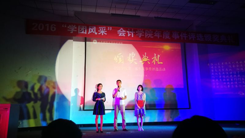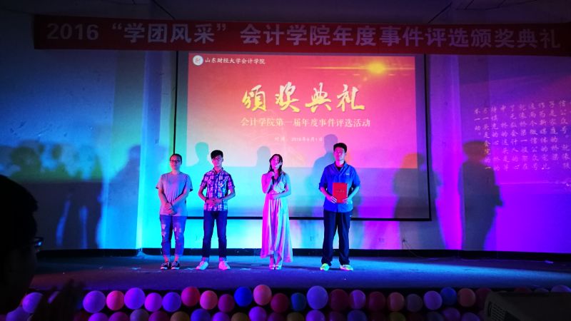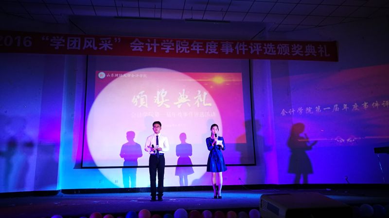 晚六点半,本次颁奖典礼正式开始。琴声飘逸,舞姿曼妙,由MG电子 文艺部编排、“金鸡杯”校园舞蹈大赛获奖作品《玉生烟》用清丽古雅的蒹葭之美为颁奖仪式拉开序幕。主持人简要介绍到场嘉宾后,开始播放二十个候选年度事件的介绍视频,每个事件风采各异,感动相同,深深吸引着在场所有人的目光。伴随着颁奖视频和真挚感人的颁奖词,获奖年度事件代表依次上台领奖并发表了各自的获奖感言。 “MG电子 质点通讯社”和“MG电子 会计学缘”两个微信公众号的工作人员真诚的说:“感谢老师与同学们的支持,感谢一起工作的兄弟姐妹,我们会继续努力。”纯朴的话语透露着对未来的坚定信念,赢得了热烈的掌声。荣获“中国大学生自强之星”提名奖的李洪霞同学用乐观自信的话语,向所有人传递出笑对生活风雨的正能量,“命运对我没有不公平,年轻时能够在苦难中摸爬滚打,使我成长的更好!”献礼2015级迎新晚会的沙画表演代表李雨阳说道:“每天上百遍的练习至今记忆犹新,为确保设备完善,我们每个人提前做了许多功课”,向我们真切的诠释了台上一分钟,台下十年功的深刻含义。2012级国际会计实验班团支书周晓坤代表荣获“山东省五四红旗团支部”和“全国共青团示范团支部”称号的学霸班向她的学弟学妹们分享了促进班级更好发展的经验与感想,用敢拼、敢闯、勇拼搏的会计人精神为财大的每个班级指引着方向。“人心凝聚、弘扬班风、共同配合对于一个班级的发展至关重要,端正态度、踏实专注、努力坚持是学习的法宝。”献礼2015年毕业典礼的MG电子 合唱团负责人马欣萌动情的说“在期末考试之际,合唱团成员能够风雨无阻按时参与排练令人十分感动,展现出身为会院人的凝聚力。走出去,我们代表的是MG电子 ,要拿出MG电子 的魄力与风采!”话语中透露着作为合唱团成员的自豪与骄傲,传递着对未来的美好展望。青春不散场,我们在路上,“会计杯”篮球比赛展现了永不言败的精神与锲而不舍的耐力,“这场用生命的毅力和耐力,用生命的速度和技巧所展示的比赛,凝聚了团队精神,表现了意志品质。”体育部负责人汪志栋的一番话将体育精神诠释的淋漓尽致。“聚是一团火,散是满天星”的星火志愿者协会荣获“山东省青年志愿者服务先进集体”称号,其优秀骨干马东飞用最真切的感受传递着星火的精神理念。“我们希望能够像火苗一样感染更多的人参与公益,将热情与希望带给支教的孩子们。”漫漫前路,星火人定会凭借努力照亮未来。一场“家文化”晚会歌舞了青春飞扬,演绎了会院一家亲。学生会副主席安炳文与副秘书长王辉说道:“家文化晚会最大的魅力在于调动了学生会的每位成员,增强了学生会成员间的凝聚力,让我们意识到这场晚会被称为‘家文化’而不是‘学生会文化’的独特内涵。”时光悠扬,岁月漫长,“家文化”晚会的温情将陪伴会院人继续前进。将目光放于台上,使荣耀照彻希望,令感动留在唇间,让思悟荡在心头,校园心理情景剧《目光》荣获山东省高校心理剧短片DV大赛二等奖,主创人员向观众们讲述着他们的故事,“短剧的成功,依赖于剧组所有人的团结、用心和毅力,他们都是整部剧不可或缺的一部分。”导演姚红宇对剧组的真情告白展现了剧组成员间的深厚友谊,期待他们更精彩的表现!榜样的推举见证楷模的辉煌,榜样的评选点燃人们心中的激情与梦想,这,就是“榜样的力量”年度人物评选活动,吕晓燕老师领奖时讲述了举办活动的初衷,回忆了记忆深刻的榜样人物,“这些年轻人身上彰显出来的奋发向上、锐意进取的精神,感动着我与每位会计学子的心。”评选活动将传承下去,让更多心怀理想的有志青年、品学兼优的学习楷模、积极奉献的公益先锋走进会院学子的心。在颁奖典礼中,穿插了精彩的节目表演,财管1503徐静怡为大家带来的《锦绣前程》,赢得现场阵阵掌声;吕晓燕老师与审计1503范存尧以及沙画团队共同呈现的沙画诗朗诵表演《与你同行》感染着在场的每位观众;会计1502班带来的小合唱《奔跑》彰显出青春活力,展现出大学生昂扬的精神面貌。