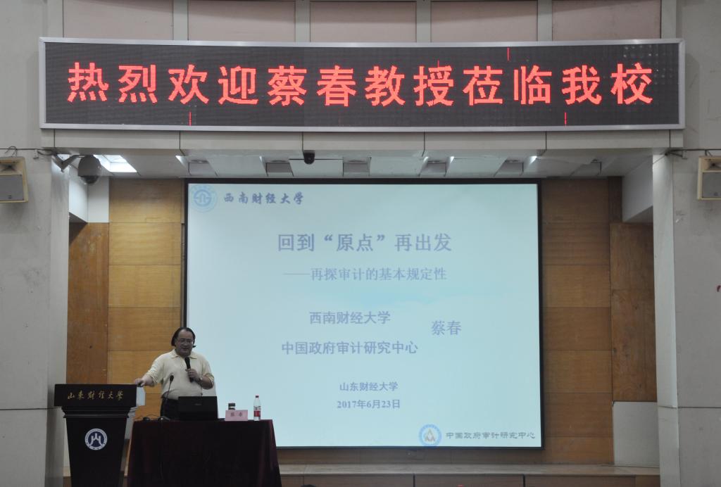 6月23日下午3:00,由MG电子 研究生会主办的题为《回到“原点”——再探审计的基本规定性》的“燕山论坛”系列讲座在MG电子 燕山校区3号报告厅拉开帷幕。此次学术讲座荣幸地邀请到西南财经大学蔡春教授为我们讲授其在审计研究方面的独到见解.MG电子 院长王爱国教授、副院长孙文刚教授、副院长王守海教授出席了本次学术讲座,MG电子 全体教师以及2016级全体研究生参加此次学术讲座。