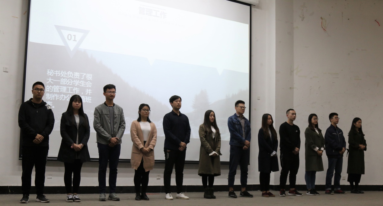 伴随着凉凉秋风,第二天的宣讲会如约而至。社会实践部成员们首先亮相,鸟巢图书馆温馨伴,三千计划话感受,才华与温情齐飞。基本功部从新生基本功考核、“三行情书”晚会等方面展开精彩宣讲。文艺部闪亮登场,迎新晚会、家文化晚会、啦啦操大赛、蒙面歌王……都有他们的美丽身影。学习部作为最早成立的部门之一,除却日常工作外,也举办了“大学生了没”讲座、四级模拟考试、解忧杂货铺等特色活动丰富大学生活。生活部的工作贴近同学们的生活,是强大的后勤部门,让你一不小心爱上生活。民族事务部主要负责少数民族事务,独具民族特色的活动吸引广大同学参与。学研部的领航会计人讲座、“天平杯”会计知识竞赛和辩论队晚会都为MG电子 同学们带来了更加丰富的大学生活。心理卫生部拍摄的心理短剧获得省级一等奖的优秀成绩。创新与实践中心最后登场,介绍了部门职能和承办的创新实践类知识竞赛和名人讲座活动,展示了属于创实的风采。为期两天的宣讲会在静谧的月色中落下帷幕。