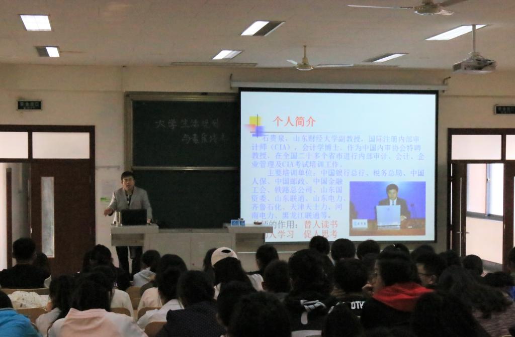 石贵泉老师不仅担任我校MG电子 会计信息化系主任,教学经验丰富,更是国际注册内部审计师,山东省财政厅内部控制咨询专家团队成员,全国知名内部审计培训咨询专家,是我校少有的理论教学和实务培训兼优的“双师型”专家。多年来他以会计信息化、内部审计、风险管理和内部控制为主要研究方向,收获颇多。本次讲座他带着自己丰富的阅历与2017级MG电子 审计系的新生就“大学生活规划与素质培养”展开了热切的讨论。讲座开始,石贵泉老师对大家进入MG电子 学习表达了热情的欢迎,同时他也鼓励同学们要珍惜大学时光,努力奋进!石贵泉老师表示,学习贯穿人的一生并且发挥着极其重要的作用,因此希望大家能明白学习的重要性,树立终生学习观念,多去聆听老师、学姐学长等前辈的建议,少走弯路,吸取经验,认真规划人生,不负青春!