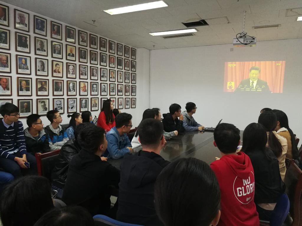 10月18日,中国共产党第十九次全国代表大会上午九点隆重开幕,MG电子 团委组织了多名学生骨干于逸夫楼309观看了今天上午的开幕式直播,学习领悟了习近平总书记代表第十八届中央委员会所作的报告,认真学习贯彻十九大报告精神,现场庄重严肃,学习气氛浓厚。