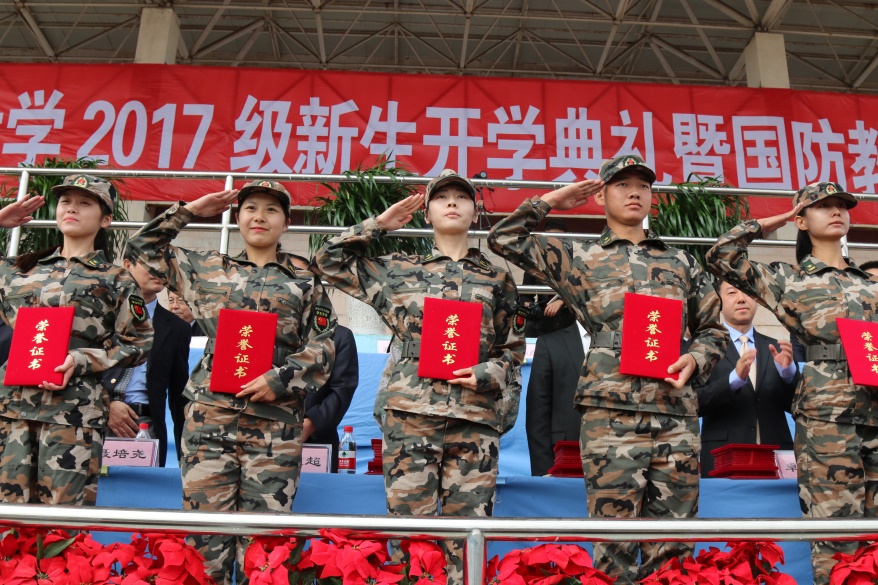 2017级大一近700新生以昂扬向上的精神面貌接受部队首长和学校领导的检阅。首先接受检阅的便是MG电子