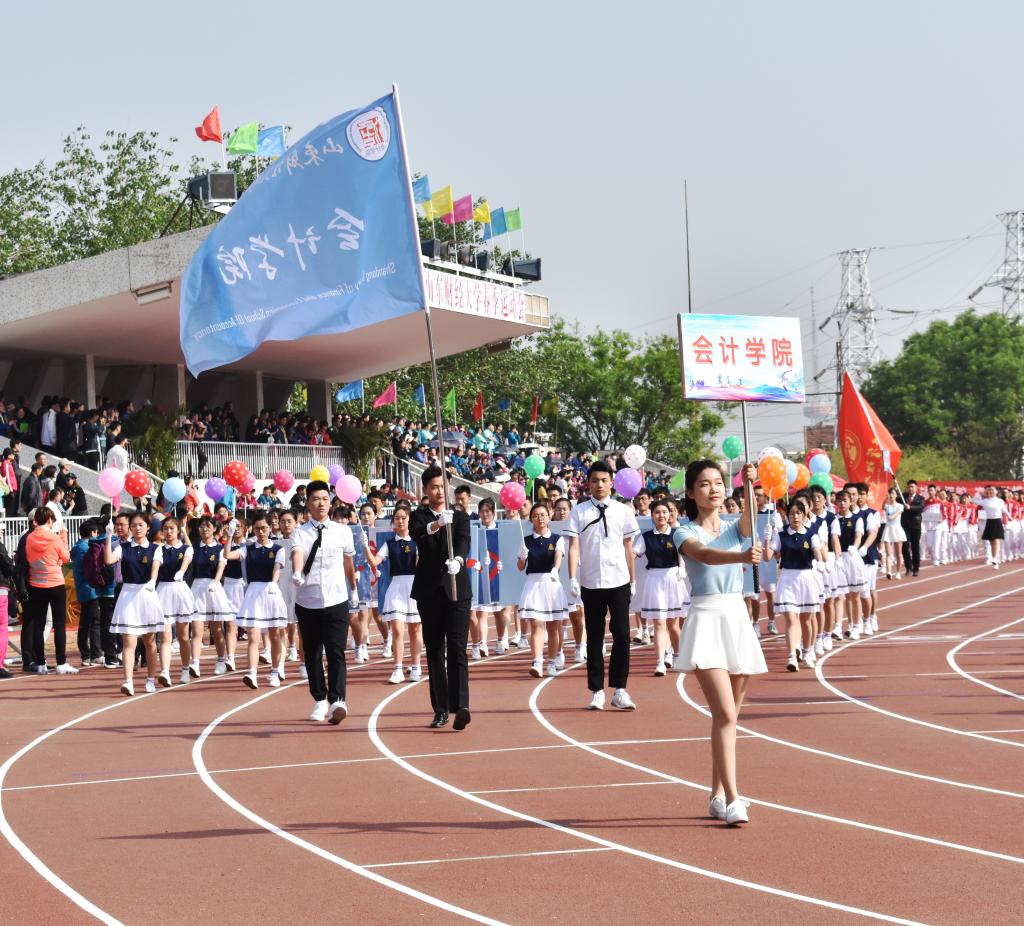 4月27日,MG电子 2018年度春季运动会在舜耕校区体育场拉开帷幕。上午八点半,伴着雄壮激昂的《运动员进行曲》,我校国旗护卫队高擎着五星红旗,迈着整齐的步伐率先入场。