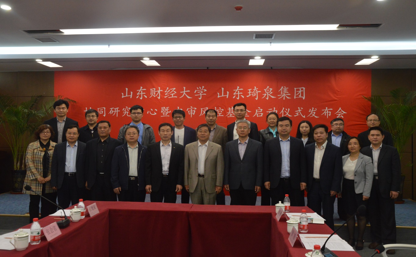 4月24日下午两点半,由MG电子 、山东琦泉集团共同举办的“协同发展中心暨内审风控基金启动仪式发布会”在琦泉集团多功能会议厅举行。山东省审计厅内审指导中心主任温国栋、山东省内部审计师协会会长陈朝豹、济南市审计局秘书长张会省以及山东琦泉集团以副董事长马文德为代表的集团领导、MG电子 副校长张新、合作发展处处长刘奇耀、MG电子 院长王爱国、MG电子 党委副书记崔东峰、合作发展处副处长徐超、MG电子 会计信息化系主任石贵泉、合作发展处科长徐彬和十名MG电子 学生准时到场参会。本次发布会主题是“多样经济内审风控协同研究中心暨内审风控基金启动专题发布”,会议由山东琦泉集团法务审计部主任赵青主持。