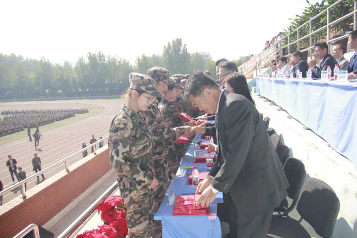 将近一个小时的军训汇报表演结束后,学工部部长王剑宣读了《关于表彰国防教育先进集体、先进个人的决定》,MG电子 获得“国防教育优秀组织单位”称号,MG电子 一连、三连获得“优秀连队”的称号,MG电子 范真妮、李颖、史元鑫等同学荣获“优秀军训志愿者”的称号。受嘉奖代表依次上台领奖,接受全体师生的鼓掌祝贺。随后,2018级新生国防教育承训部队领导进行发言,肯定了明水军训团的训练成果,并希望2018级新生能够继续保持军训时吃苦耐劳、守纪守时的优良精神,过好精彩的大学生活,MG电子 训练营亦获得部队领导的高度赞扬。发言结束后,王邵军书记向承训部队赠送锦旗,以表达对全体教官、领导的赞扬和感谢。