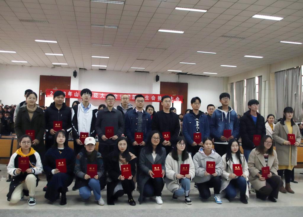 主持人宣读学生会换届名单,并由到场老师为新一届学生会主席团、部长颁发聘书后,学生会主席田正和同学代表新一届学生会上台发言。他表示,这届学生会是承前启后、开拓创新的一届,新一届的学生干部应更加注重提升自身品德和专业素养,合理规划工作与学习的时间,进而实现个人素质的全面发展。学生会秘书长杜栋同学呼吁学生干部都能够全心全意为同学们服务。2016级优秀班级团支书张若男同学也从如何增强班级凝聚力和成绩协同效应分享工作经验,为2018级新生更好地开展工作提供了宝贵建议。