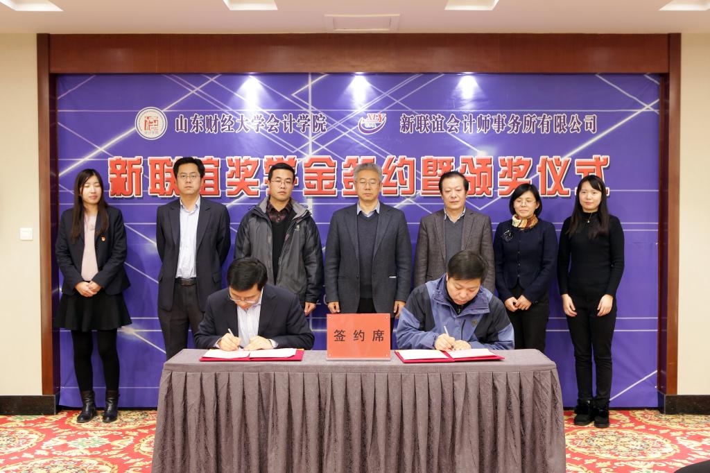 刘洪和与刘奇耀签署了新联谊奖学金捐赠协议,付亚宣读获奖学生名单。