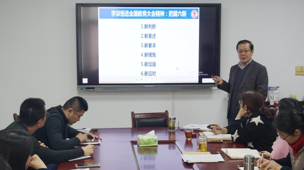 张涛为与会人员做了题为“加强政治引领,做好思想工作,提高学生素质”的专题报告,解读全国教育大会讲话主要精神,带领大家认真学习新时代高教40条和教育部全国高等学校本科教育工作会议精神。张涛认为,高校教育应坚持目标导向,培养更多创新型人才和高素质劳动者,将育人的重心回归本科教育,引用麻省理工学院校长和哈佛本科生院院长的办学理念,着重强调本科教育对学科和学校建设的重要性。