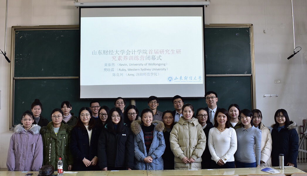 12月24日下午,黄泰然博士的“研究生学术训练营”第五期、第六期在Y301教室举行,此次训练营主要包括特邀嘉宾分享文献综述写作技巧和研究小组汇报展示两部分内容。MG电子 孙文刚副院长、西悉尼大学樊晗露博士、洛阳师范学院陈良柯老师、MG电子 朱彩婕副教授、田彩英副教授、韩跃副教授、吴大新副教授、王金磊博士及2018级全体硕士研究生参加了本次训练营。