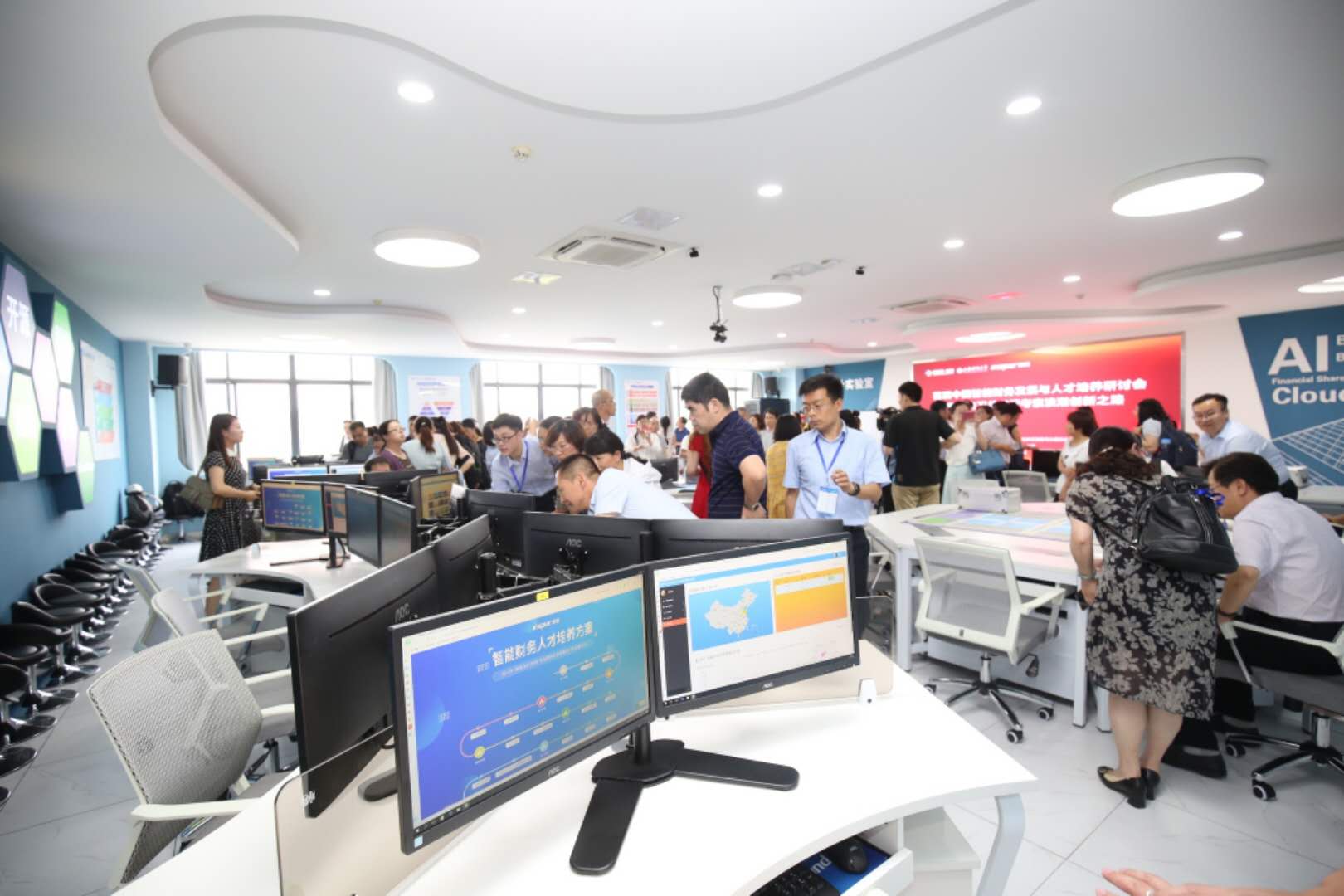 会上,浪潮集团与MG电子 合作共建的“智能会计”实验室正式揭牌。与会嘉宾对企业的财务转型思路和高校人才培养代表进行了报告,并参观浪潮服务器智能工厂和刚刚建成的智能会计实验室。