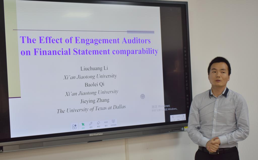 5月29日下午,西安交通大学齐保垒教授应MG电子 邀请,在燕山校区逸夫楼Y309作题为《The effect of engagement auditors on financial statement comparability》的学术报告。讲座由王守海副院长主持,MG电子 部分老师以及2018级部分硕士研究生聆听了讲座。齐保垒教授是西安交通大学管理学院会计与财务系教授、博士生导师,在审计、公司治理与财务报告信息质量领域有很高的学术造诣。