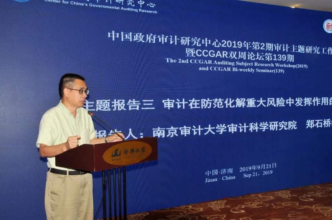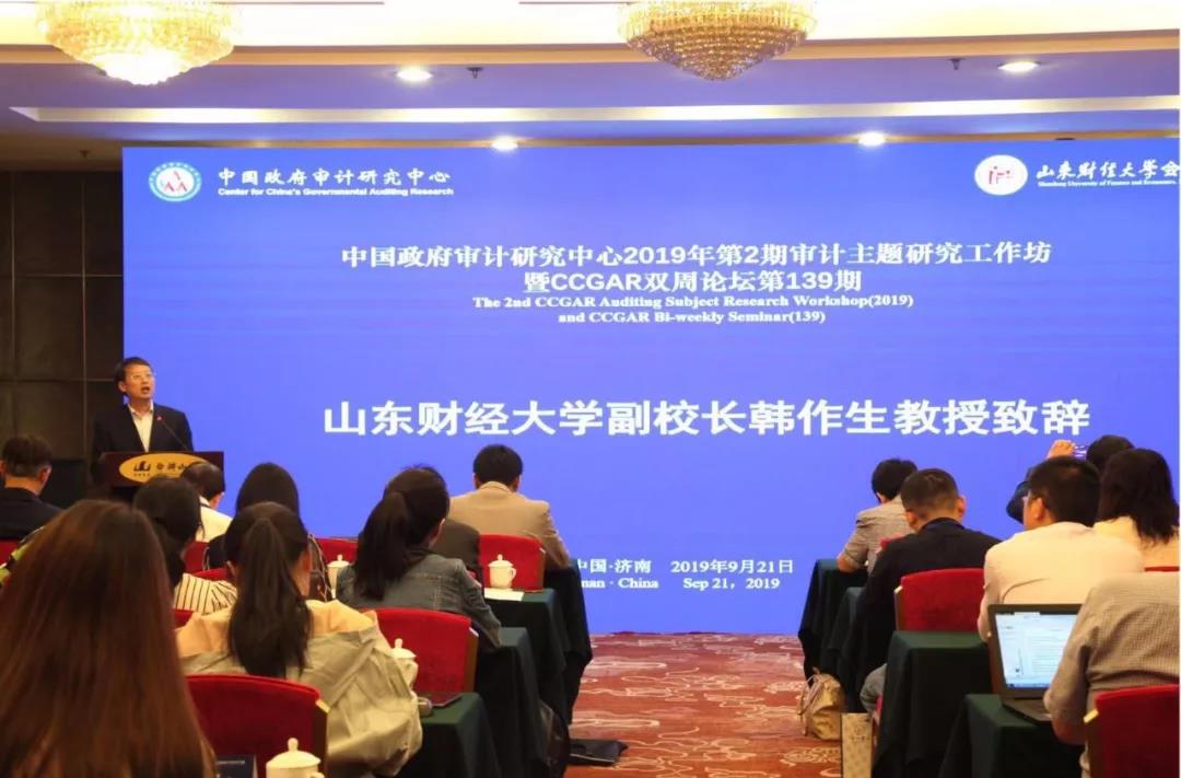 2019年9月21日,由西南财经大学、中国政府审计研究中心与MG电子 联合主办,《经济研究》、《管理世界》、《南开管理评论》、《会计研究》和《审计研究》等期刊合作支持的“中国政府审计研究中心2019年第2期审计主题研究工作坊暨CCGAR双周论坛第139期”在济南舜耕山庄成功举办。本次会议主题是审计创新和重大风险防控。山东省审计厅一级巡视员黄利明厅长,审计署审计科研所副所长刘力云研究员,《经济研究》副主编郑红亮研究员,《南开管理评论》副主编程新生教授,中国政府审计研究中心主任蔡春教授,重庆大学刘斌教授,山西财经大学MG电子 院长吴秋生教授,南京审计大学郑石桥教授,西南财经大学余海宗教授、罗宏教授、廖林副教授、蔡利副教授,山东大学经济学院院长曹廷求教授,MG电子 副校长韩作生教授以及《会计之友》、《商业会计》和全国高校的各位同仁、老师、同学出席了本次工作坊暨CCGAR双周论坛。