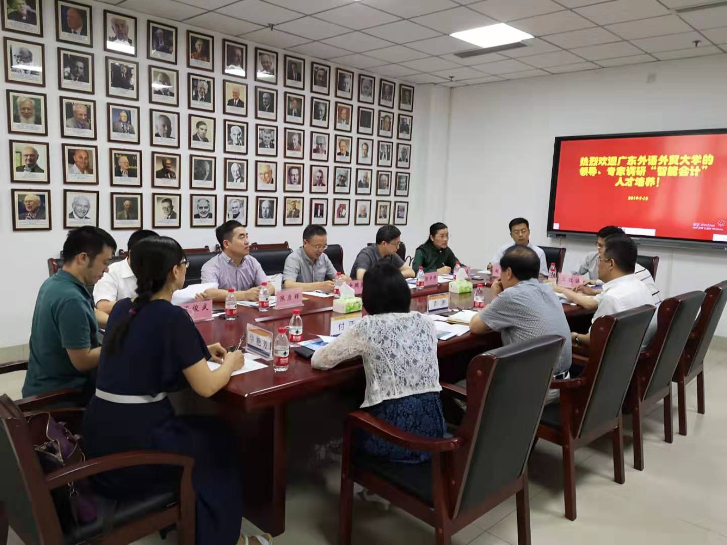 7月10日下午,广东外语外贸大学MG电子 院长余鹏翼、规划处处长陈彦辉、资产处处长吴民、教务处副处长董俊武、网络与信息化中心副主行陈平仲、党委副书记杜焕君、MG电子 教师刘星河一行7人来到MG电子 ,调研MG电子 在“会计学(智能会计方向)”专业人才培养以及智能会计实验室建设经验。会议由MG电子 党委书记张涛主持,MG电子 副院长王守海、党委副书记付亚、会计信息化系主任牛艳芳参加。