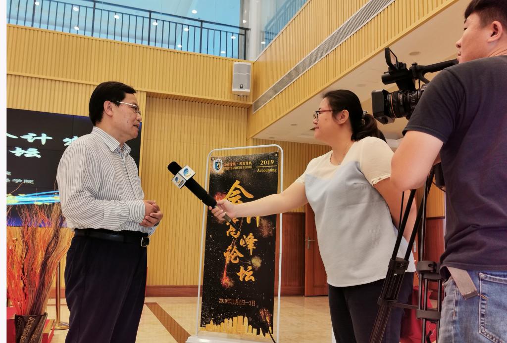 会议期间,王爱国院长接受了三亚电视台和三沙电视台记者专访,王院长介绍了我校“智能会计”培养方向的发展缘起、探索路径和实施情况,他指出,在以“大智移云物”为代表的第四次技术浪潮汹涌来袭之时,会计学科发展必须要求生、求变、求兴,“智能会计”是一个可行的会计学科创新路径,希望能借着海南自贸港的发展东风,给海南会计学科发展带来些许启发。